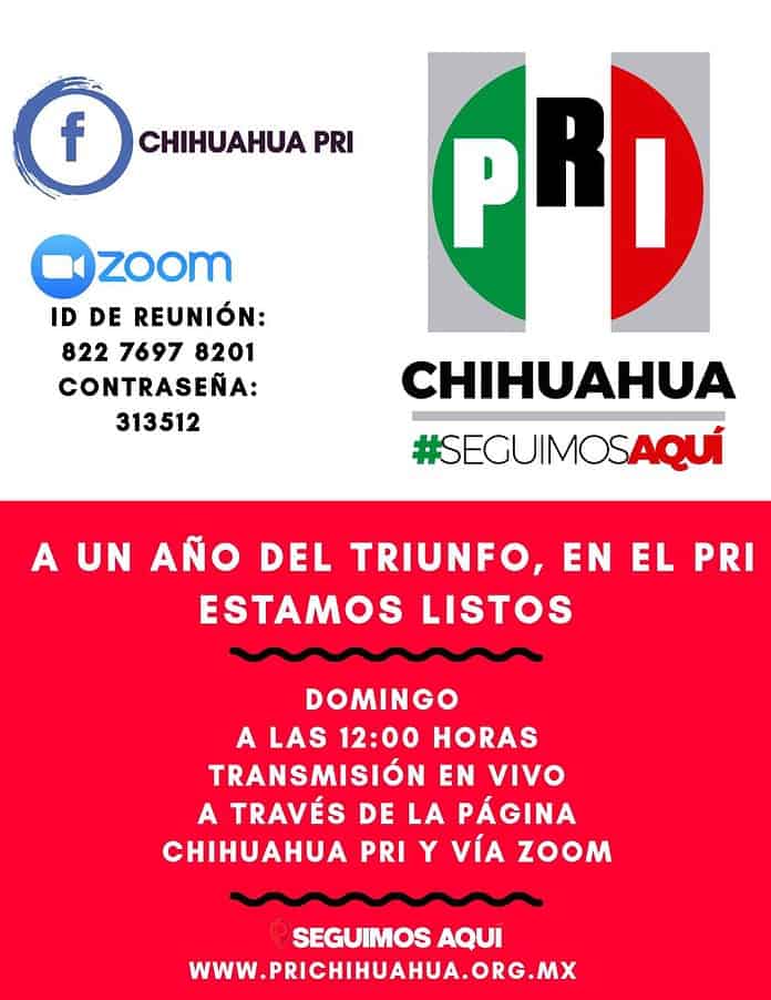 Comunicados A un año del triunfo, en el PRI estamos listos 7 junio, 2020 0 686 FacebookTwitterWhatsAppEmail Participa este domingo a las 12 del día en nuestra transmisión especial a través de chihuahua PRI por facebook.