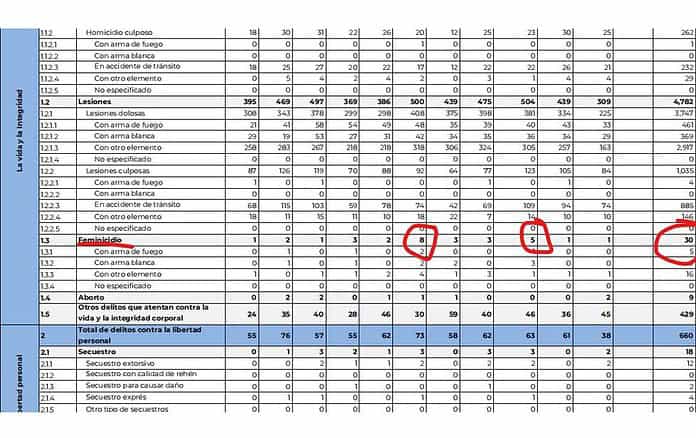 Incluso se superó, sin contar aún diciembre, la cifra de mujeres asesinadas en 2019, que era de 29, al computarse de acuerdo al Secretariado de Seguridad Pública un total de 30 homicidios al último día de noviembre.