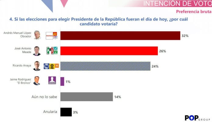 En la más reciente encuesta de POP Group, el candidato de la coalición Todos por México, José Antonio Meade se acerca cada vez más al aspirante de Morena, Andrés Manuel López Obrador.
