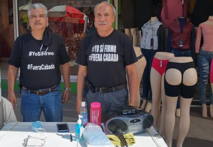 Estuvo por ahí don Pepe Márquez, pidiendo firmas contra Cabada, pero llama la atención que no utilizó cubre bocas, ni él ni su acompañantes.