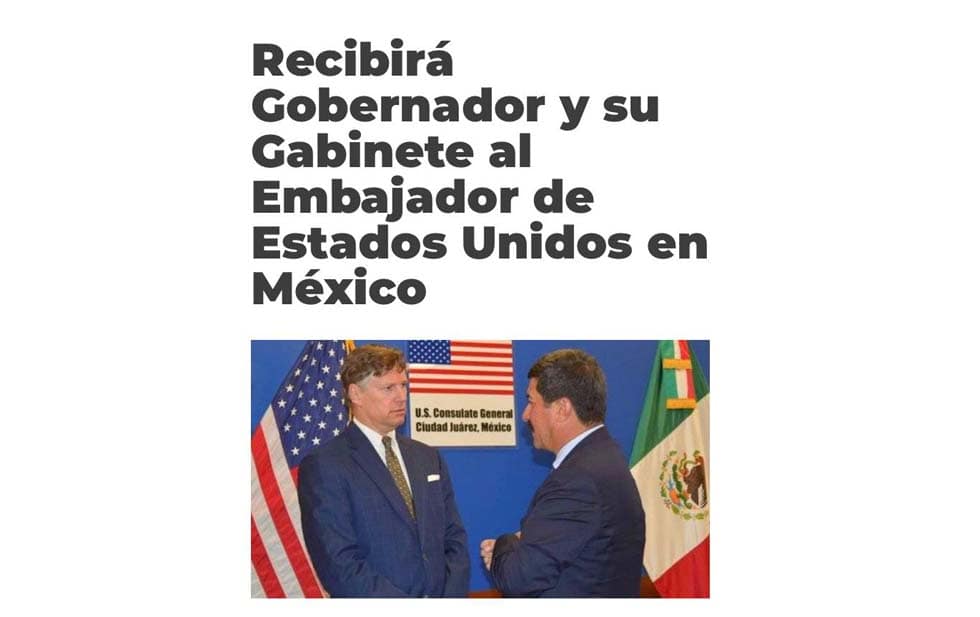 Es evidente el uso político electoral de la visita del embajador norteamericano en México, por parte de Javier Corral, muy lejos de la obligada cortesía internacional.