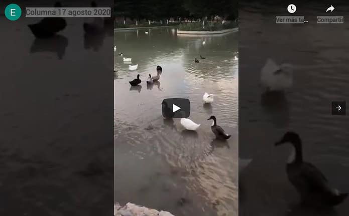 Tenemos en la versión digital de La Columna un video de los alegres patos en el solitario parque. También la foto del vigilante que se llevó los antiaplausos la tarde del sábado amenazando a papás y mamás delante de su hijos. Sólo dan entrada a “los adultos”, que se reducen a contadas parejas de enamorados.