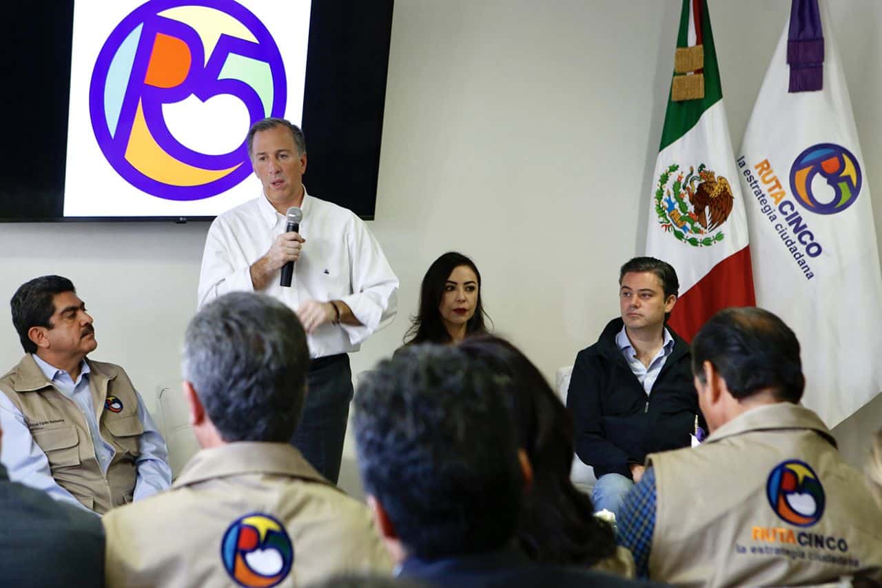 El candidato de los partidos Revolucionario Institucional (PRI), Verde Ecologista de México (PVEM) y Nueva Alianza a la Presidencia de la República, José Antonio Meade Kuribreña, se reunió este sábado con integrantes de Ruta Cinco, una agrupación conformada por diferentes sectores de la sociedad y que encabeza el diputado federal, Manuel Espino.