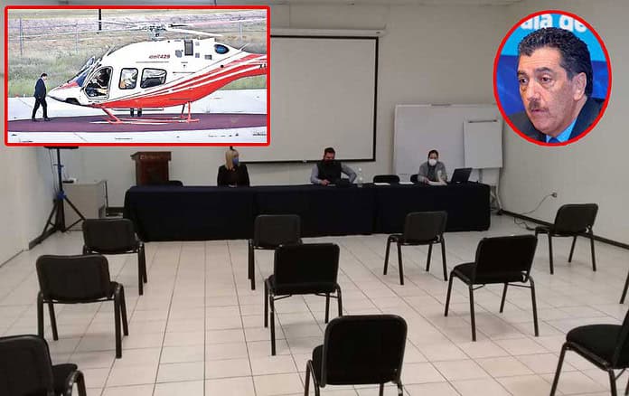 Tenemos la ahora famosa foto de una desierta sala de subastas en la ciudad de Chihuahua el martes de la semana pasada. Fracasó ahí el tercer intento por vender el lujoso helicóptero Bell 429. Cinco, seis y siete millones de dólares presentaron respectivamente como precio base, en promedio.