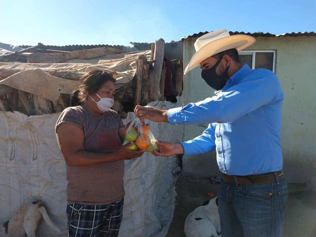 De tacaño no bajaron al alcalde de Satevó, Adrián Durán Mendoza, quien repartió, increíble, ¡cuatro naranjas y tres manzanas! a algunos habitantes con tal de tomarse la foto, en pos de mostrarse como “el gran apoyador de los pobres”.