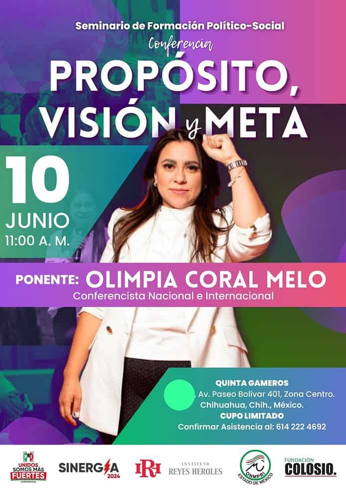 Inicio Comunicados ONMPRI invita a la conferencia “Visión, Propósito y Meta” impartida por Olimpia...