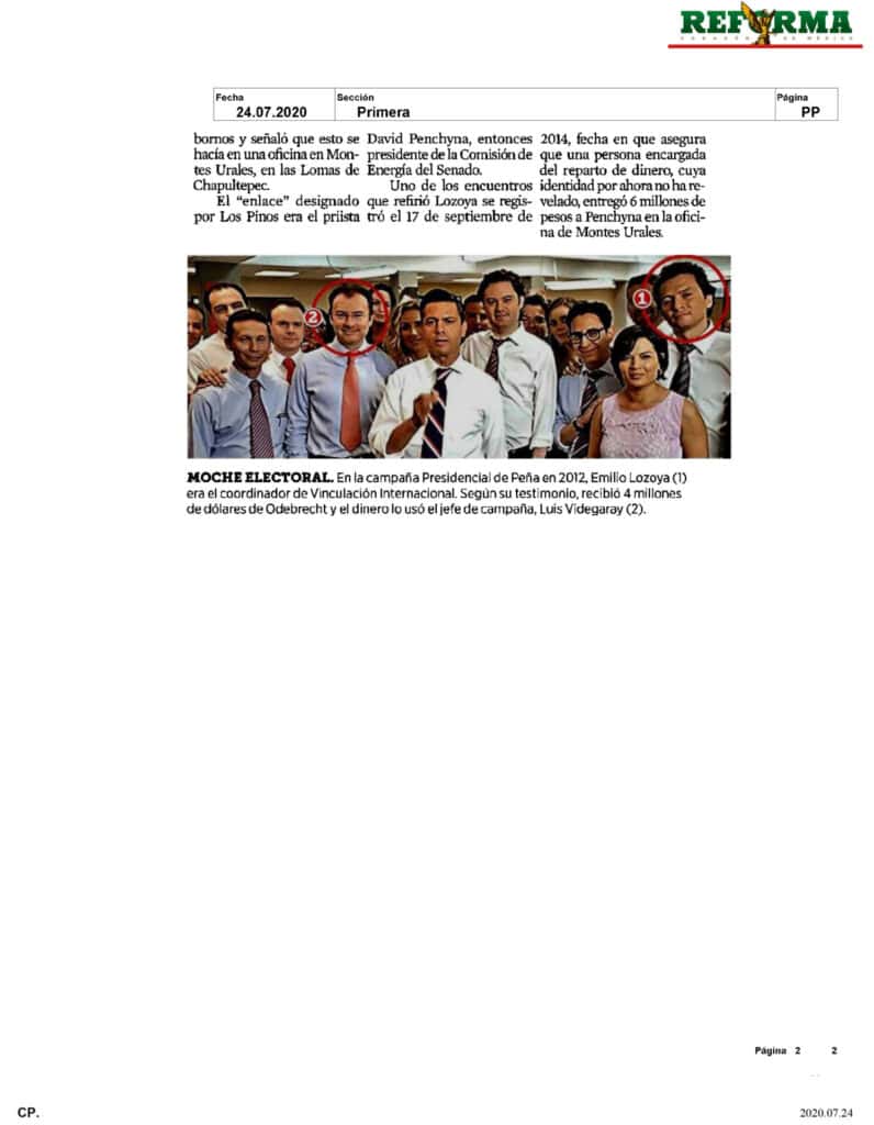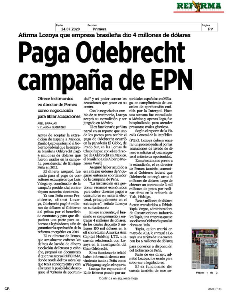 Portadas y Columnas políticas de hoy Paga Odebrecht campaña de EPN 24 julio, 2020 0 626 FacebookTwitterWhatsAppEmail Reforma / 24 de julio 2020