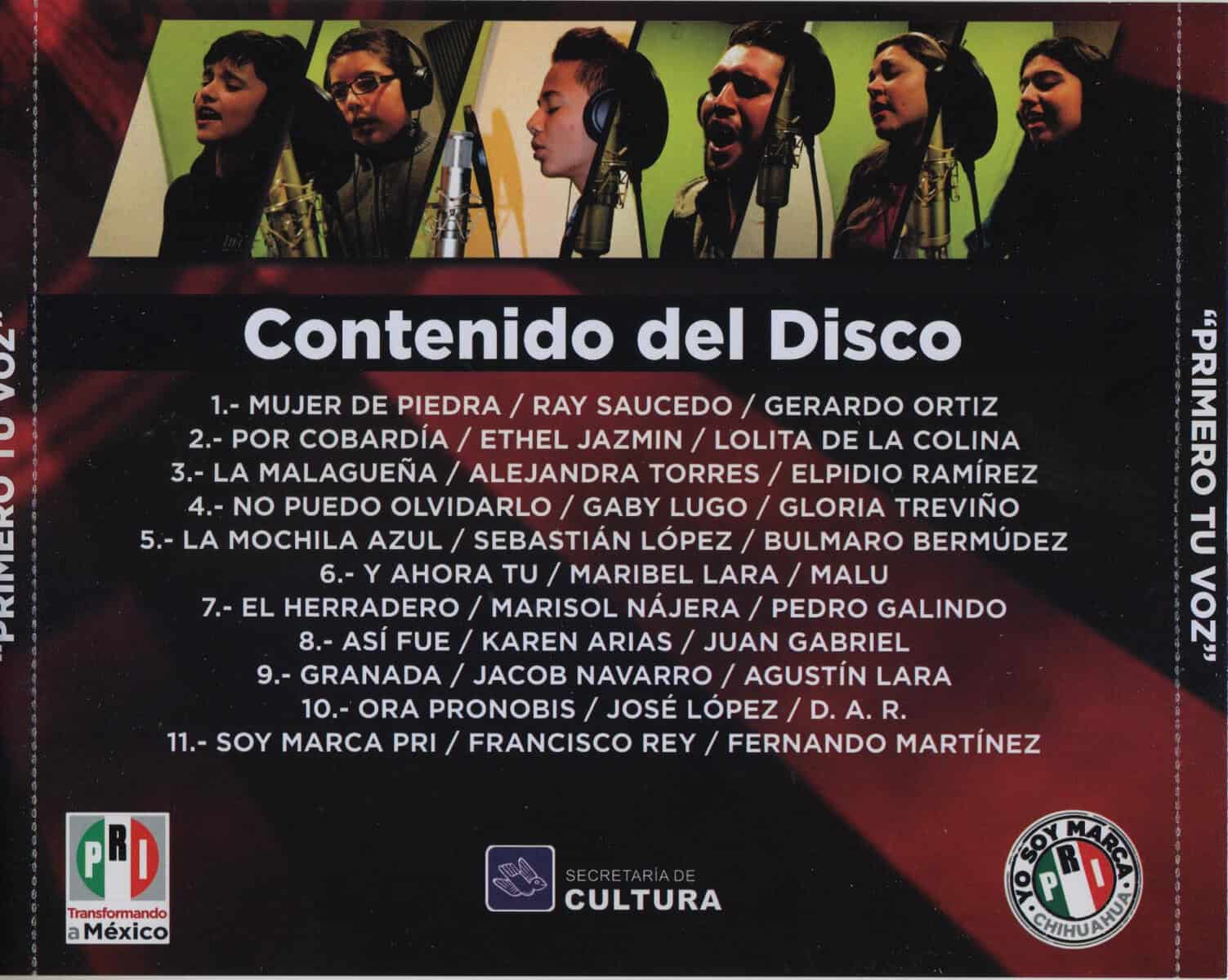 Con la finalidad de impulsar el talento chihuahuense, el Comité Directivo Estatal del PRI a través de su Secretaria de Cultura, llevó a cabo el lanzamiento del disco musical “Primero Tu Voz”, el cual contiene las canciones de los artistas que resultaron los ganadores del concurso.