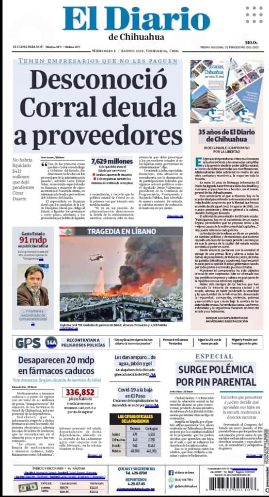 Portadas y Columnas políticas de hoy Primeras planas locales / 05 de agosto 2020 5 agosto, 2020 0 607 FacebookTwitterWhatsAppEmail