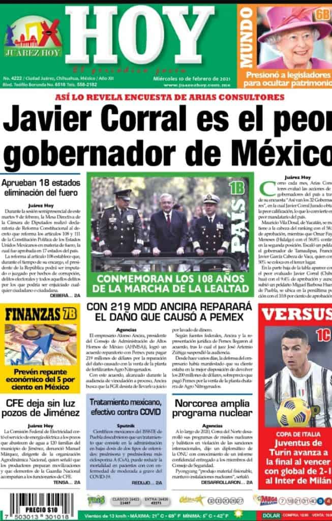 Portadas y Columnas políticas de hoy Primeras planas locales / 10 de febrero 2021 10 febrero, 2021 0 564 FacebookTwitterWhatsAppEmail