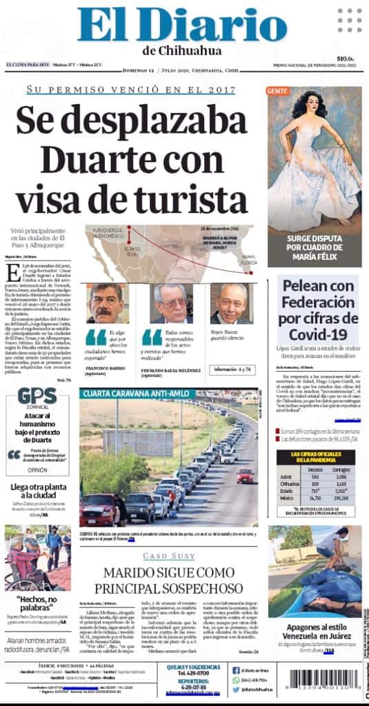 Portadas y Columnas políticas de hoy Primeras planas locales 12 de julio 2020 12 julio, 2020 0 460 FacebookTwitterWhatsAppEmail