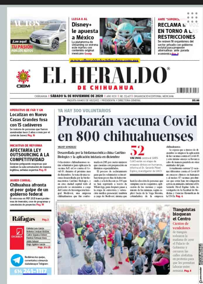 Portadas y Columnas políticas de hoy Primeras planas locales / 14 de marzo 2020 14 noviembre, 2020 0 425 FacebookTwitterWhatsAppEmail