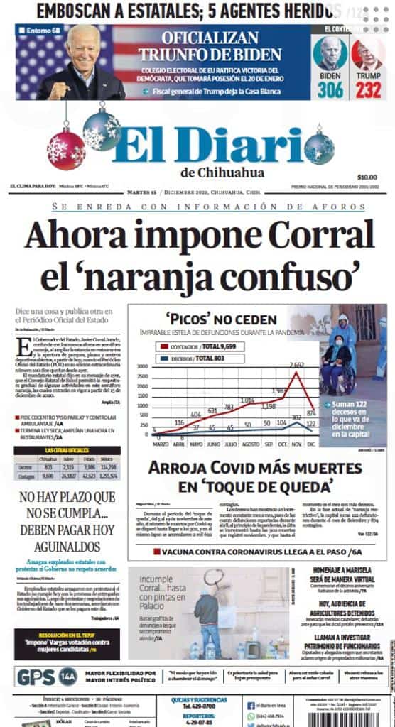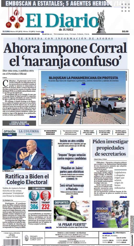 Portadas y Columnas políticas de hoy Primeras planas locales / 15 de diciembre 2020 15 diciembre, 2020 0 419 FacebookTwitterWhatsAppEmail