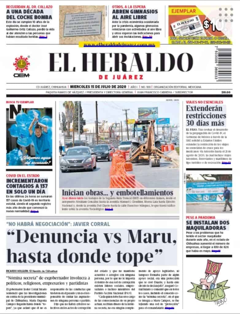 Portadas y Columnas políticas de hoy Primeras planas locales 15 de julio 2020 15 julio, 2020 0 419 FacebookTwitterWhatsAppEmail