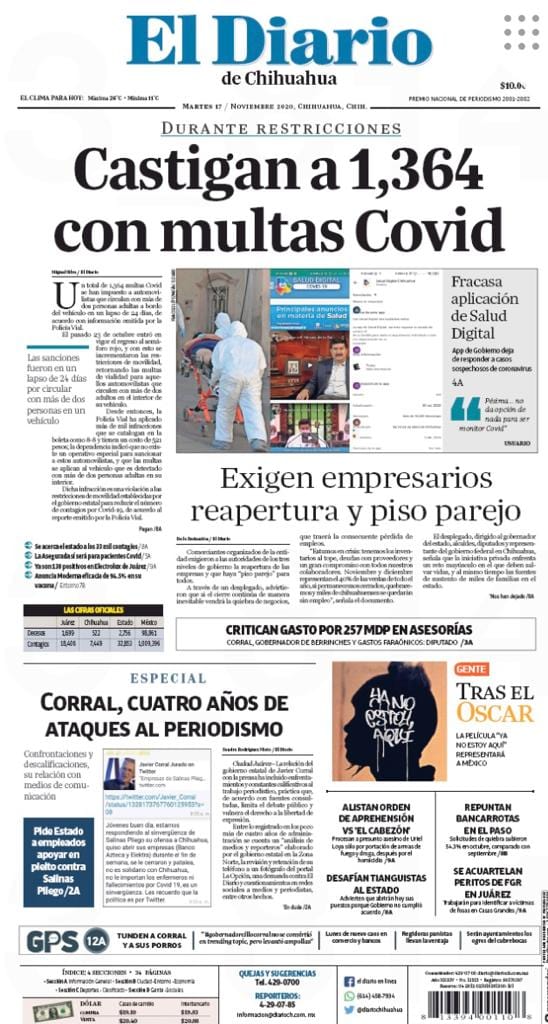 Portadas y Columnas políticas de hoy Primeras planas locales / 17 de noviembre 2020 17 noviembre, 2020 0 466 FacebookTwitterWhatsAppEmail