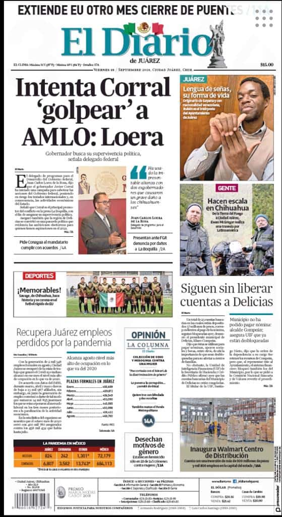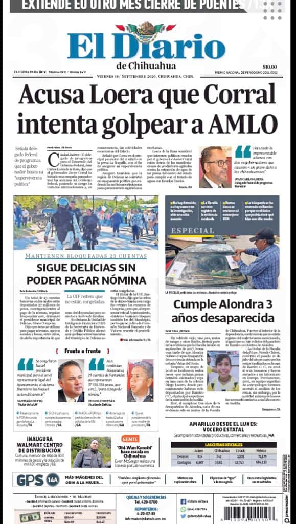 Portadas y Columnas políticas de hoy Primeras planas locales 18 de septiembre 2020 18 septiembre, 2020 0 446 FacebookTwitterWhatsAppEmail