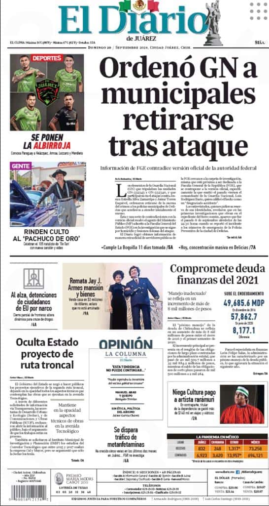 Portadas y Columnas políticas de hoy Primeras planas locales / 20 de septiembre 2020 20 septiembre, 2020 0 442 FacebookTwitterWhatsAppEmail