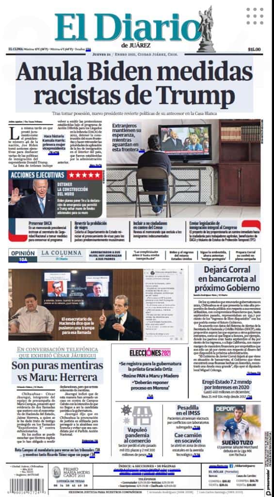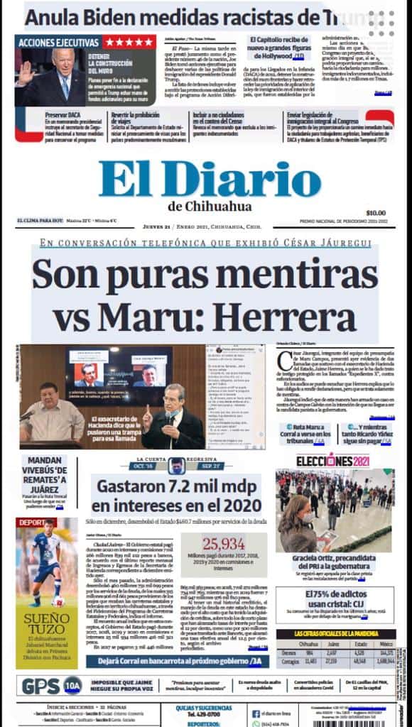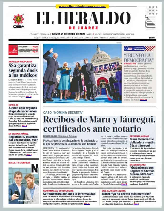 Portadas y Columnas políticas de hoy Primeras planas locales / 21 de enero 2021 21 enero, 2021 0 445 FacebookTwitterWhatsAppEmail