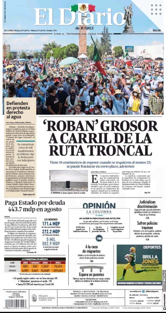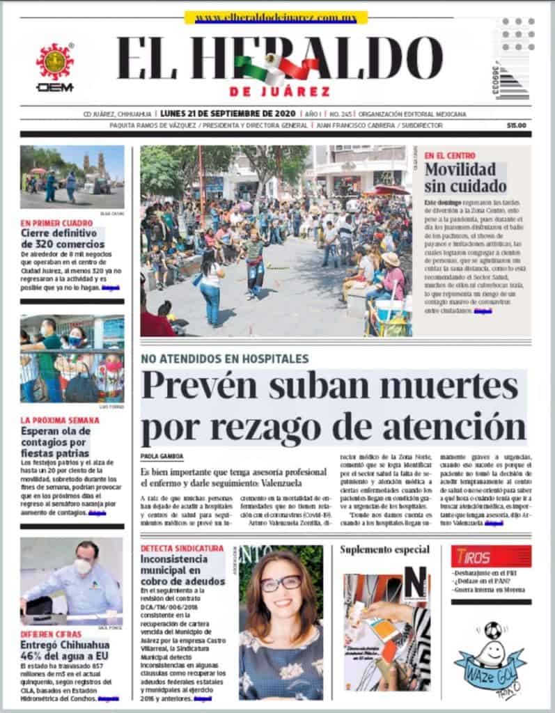 Portadas y Columnas políticas de hoy Primeras planas locales / 21 de septiembre 2020 21 septiembre, 2020 0 434 FacebookTwitterWhatsAppEmail