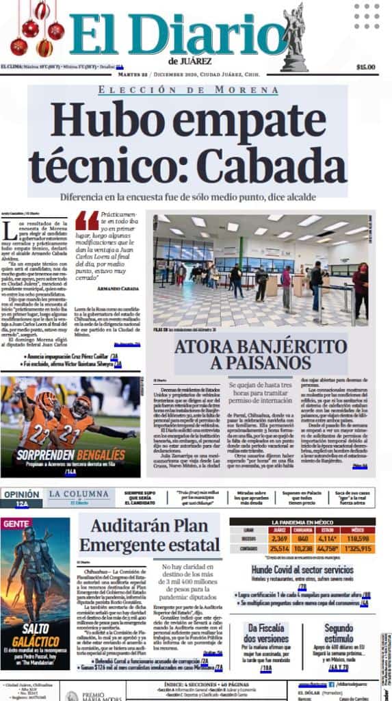 Portadas y Columnas políticas de hoy Primeras planas locales / 22 de diciembre 2020 22 diciembre, 2020 0 400 FacebookTwitterWhatsAppEmail