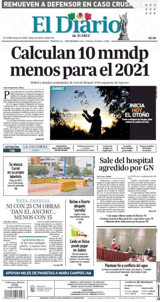 Portadas y Columnas políticas de hoy Primeras planas locales / 22 de septiembre 2020 22 septiembre, 2020 0 412 FacebookTwitterWhatsAppEmail