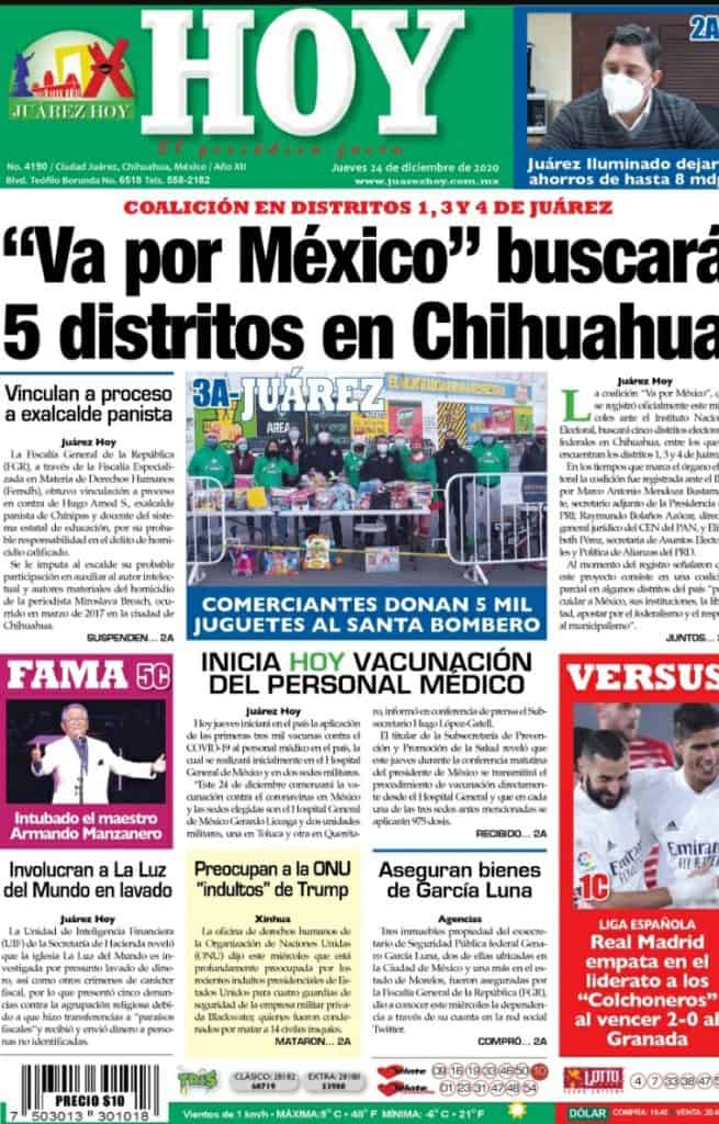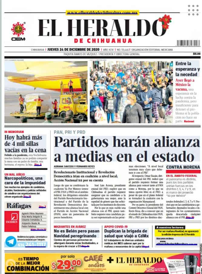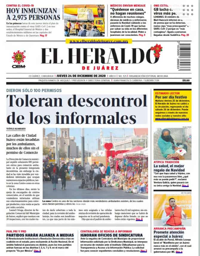 Portadas y Columnas políticas de hoy Primeras planas locales / 24 de diciembre 2020 24 diciembre, 2020 0 365 FacebookTwitterWhatsAppEmail