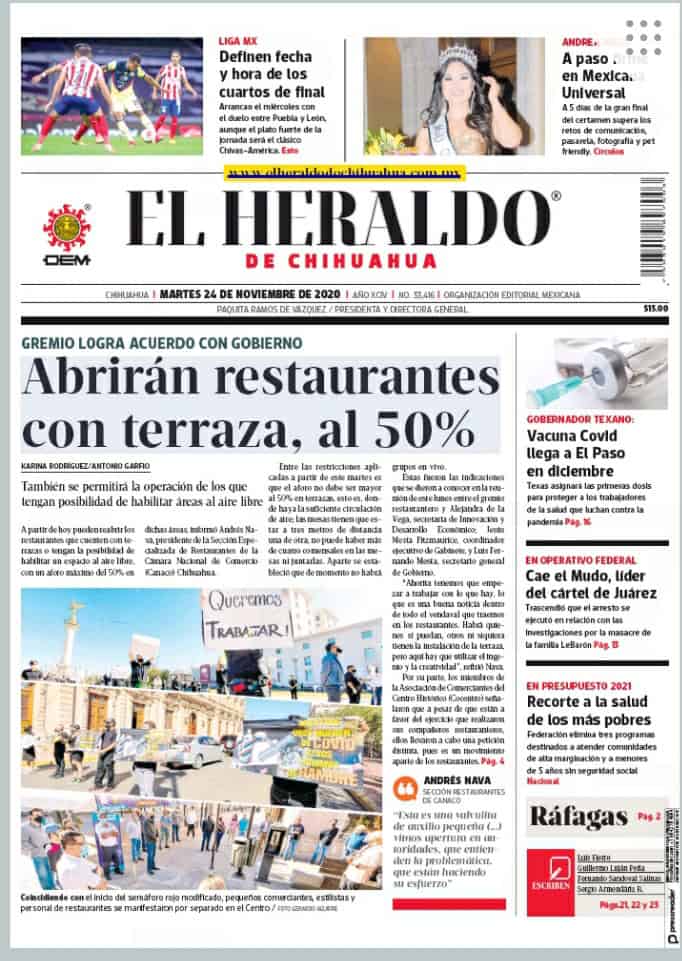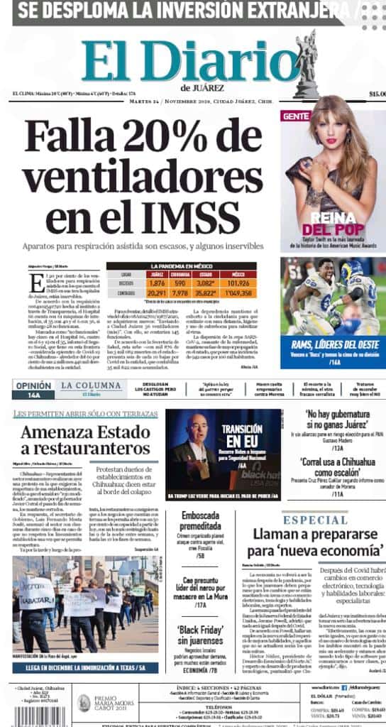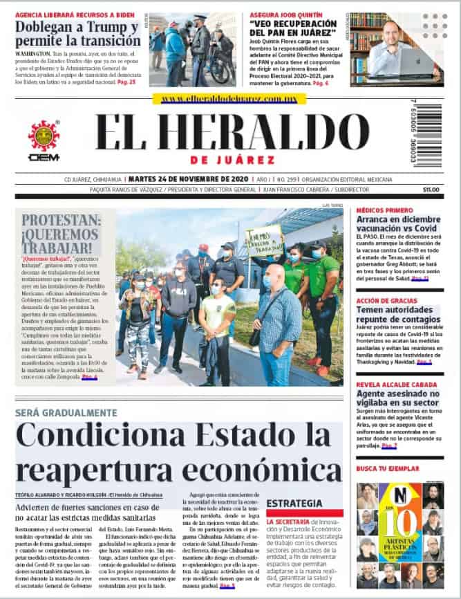 Portadas y Columnas políticas de hoy Primeras planas locales / 24 de noviembre 2020 24 noviembre, 2020 0 433 FacebookTwitterWhatsAppEmail