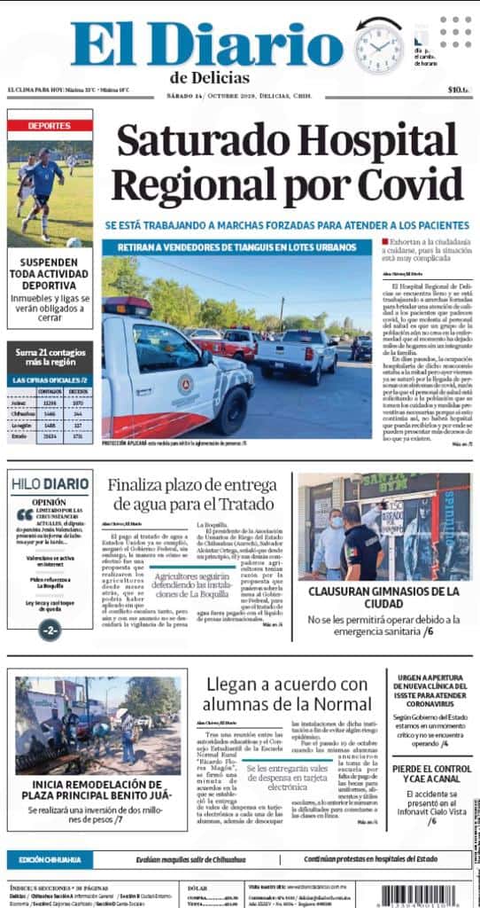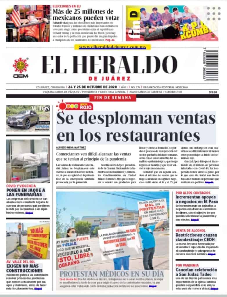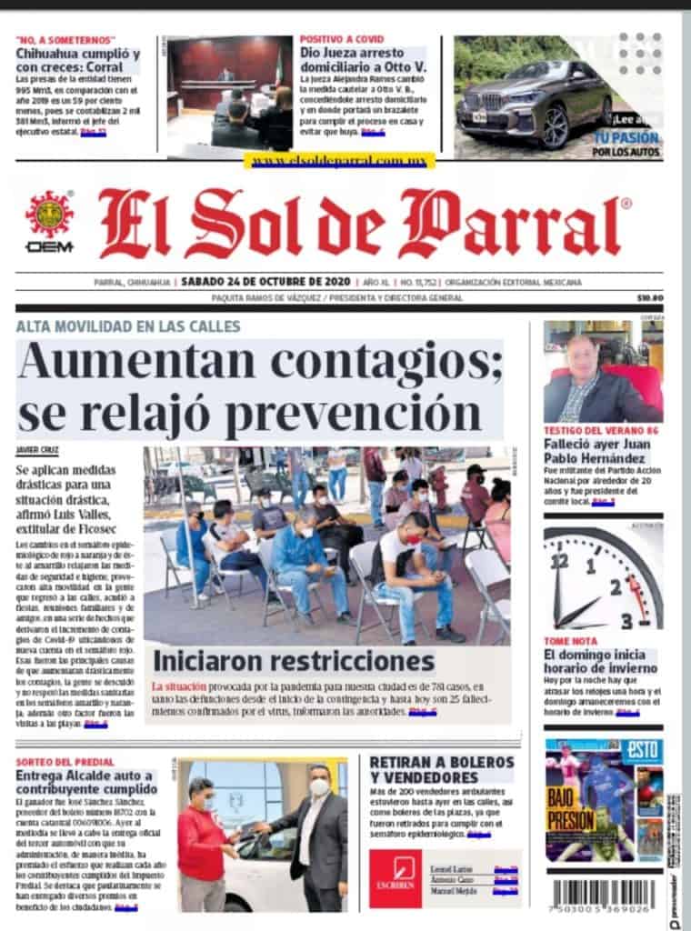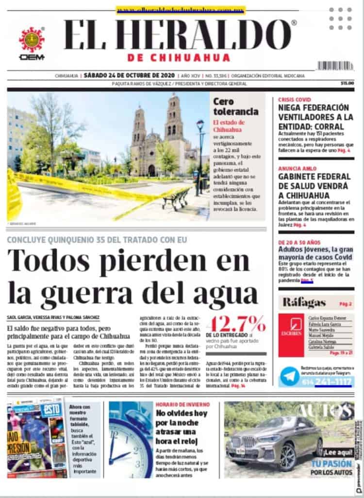 Portadas y Columnas políticas de hoy Primeras planas locales / 24 de octubre 2020 24 octubre, 2020 0 398 FacebookTwitterWhatsAppEmail