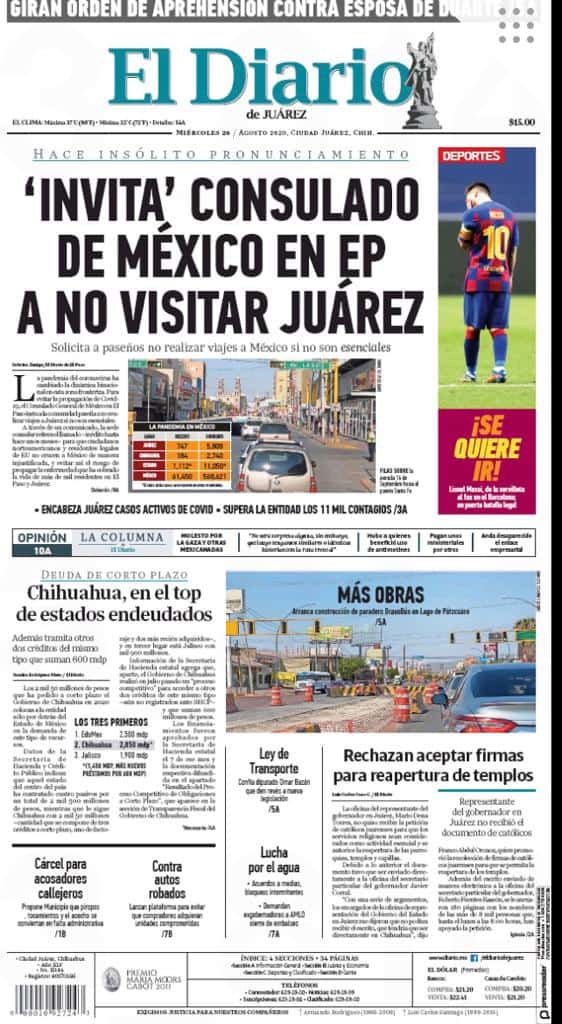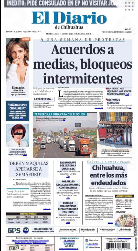 Portadas y Columnas políticas de hoy Primeras planas locales / 26 de agosto 2020 26 agosto, 2020 0 522 FacebookTwitterWhatsAppEmail