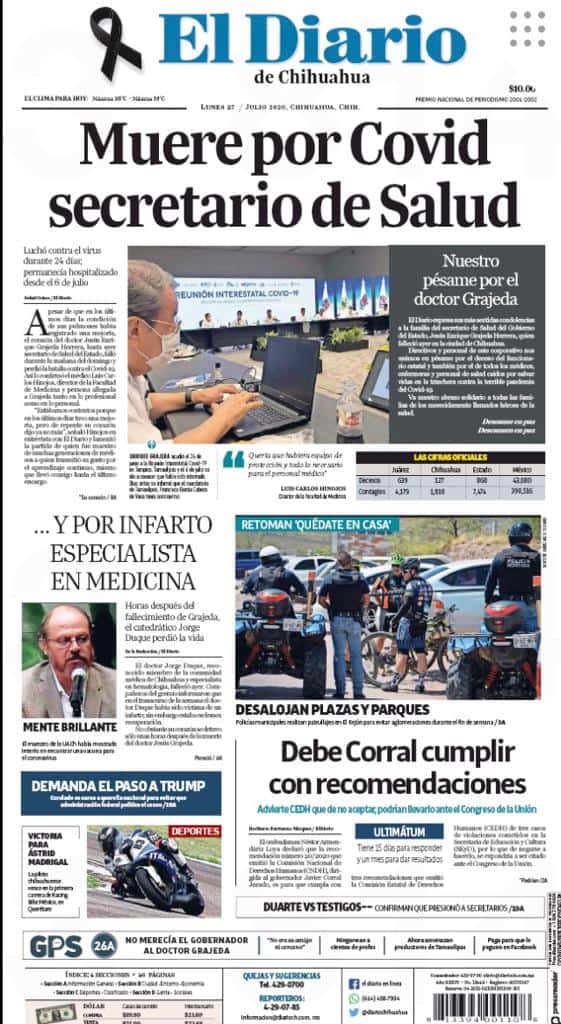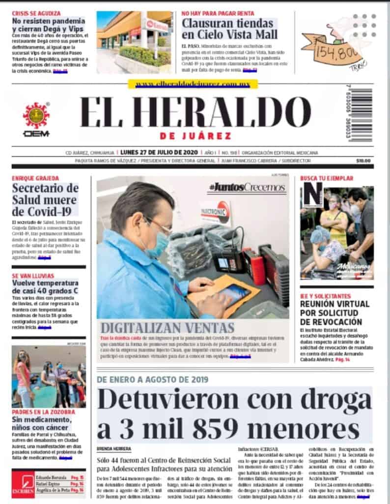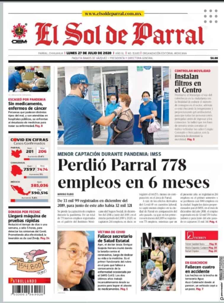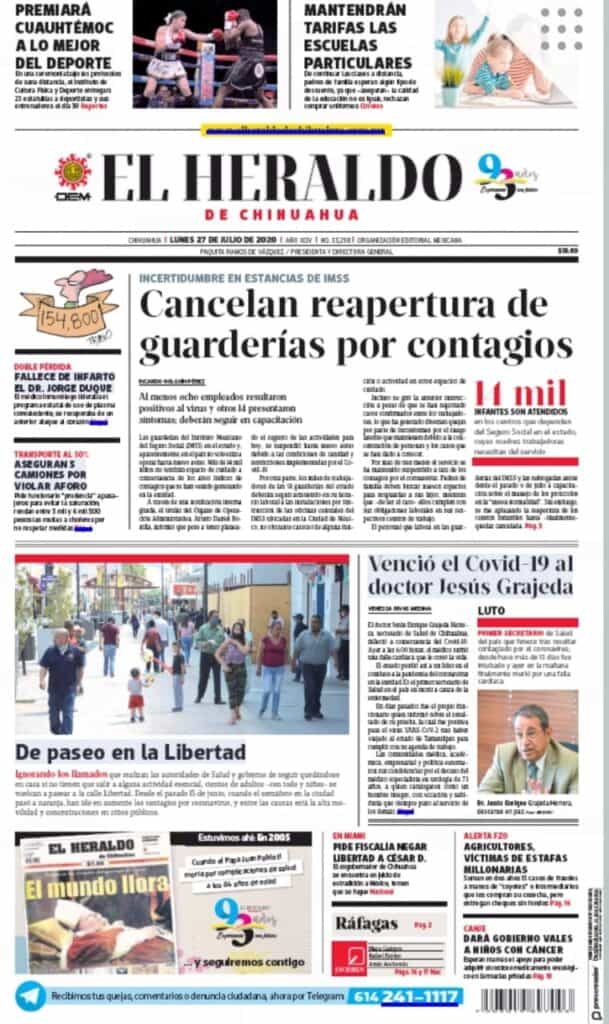 Portadas y Columnas políticas de hoy Primeras planas locales / 27 de julio 2020 27 julio, 2020 0 416 FacebookTwitterWhatsAppEmail