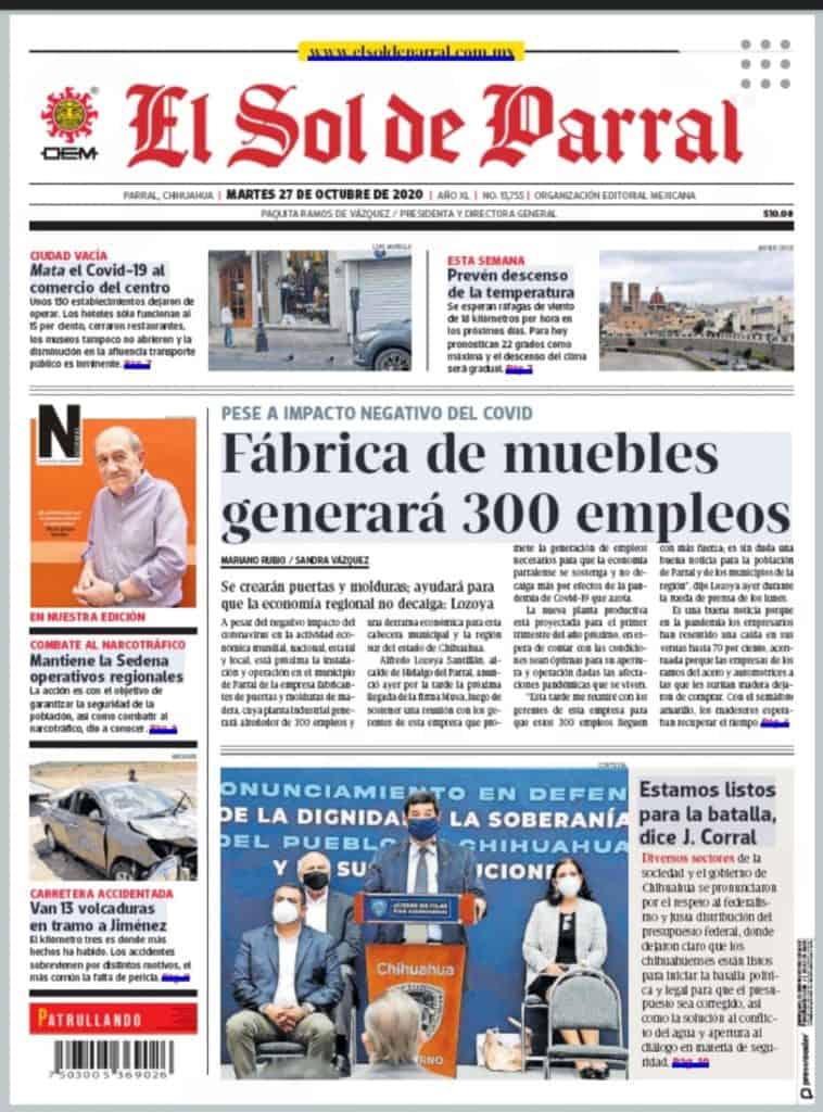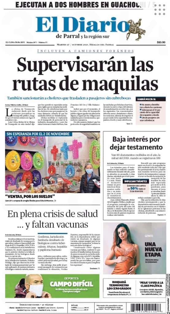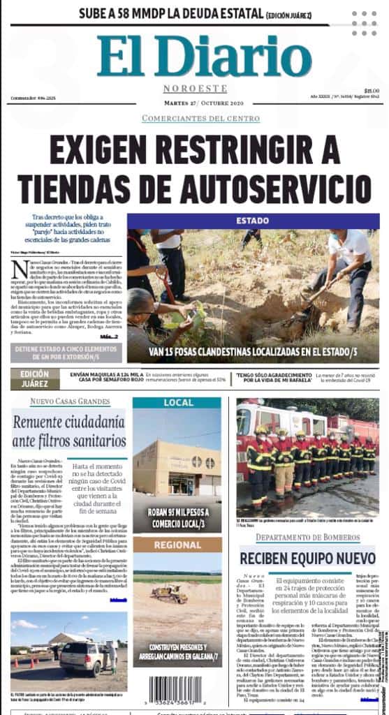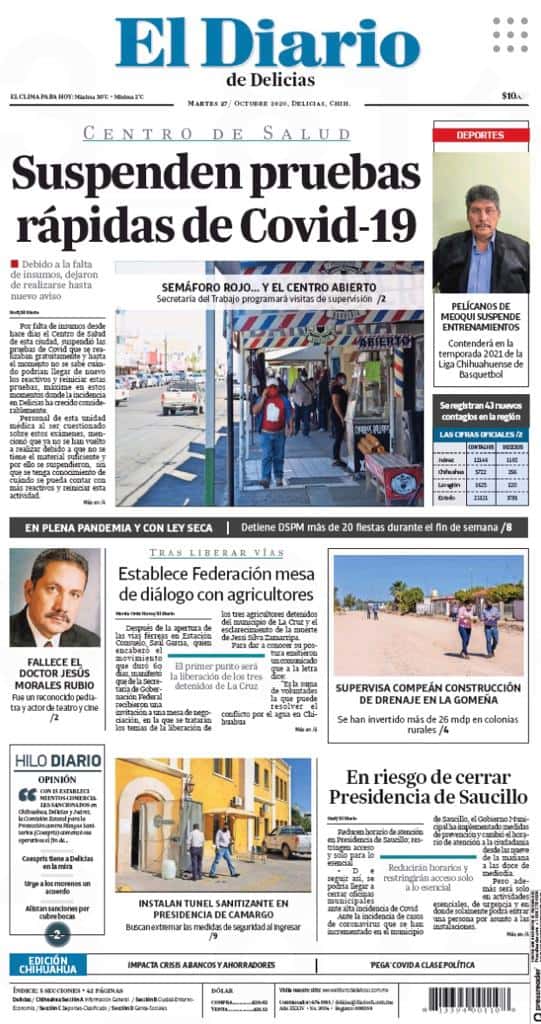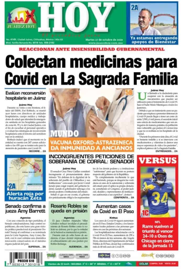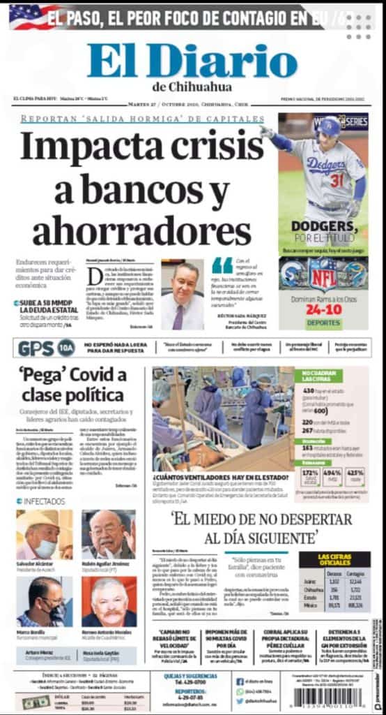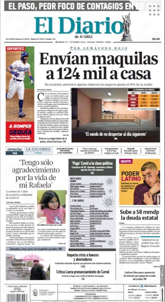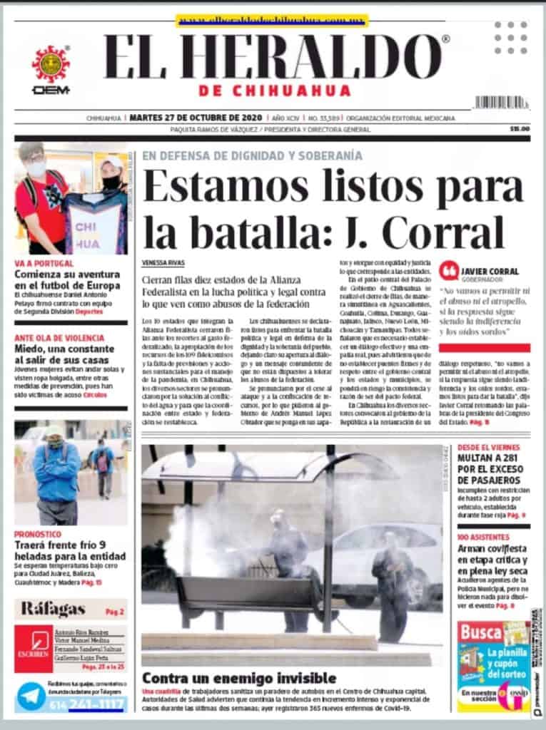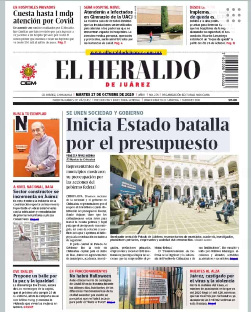 Portadas y Columnas políticas de hoy Primeras planas locales / 27 de octubre 2020 27 octubre, 2020 0 469 FacebookTwitterWhatsAppEmail