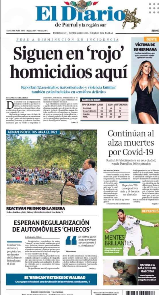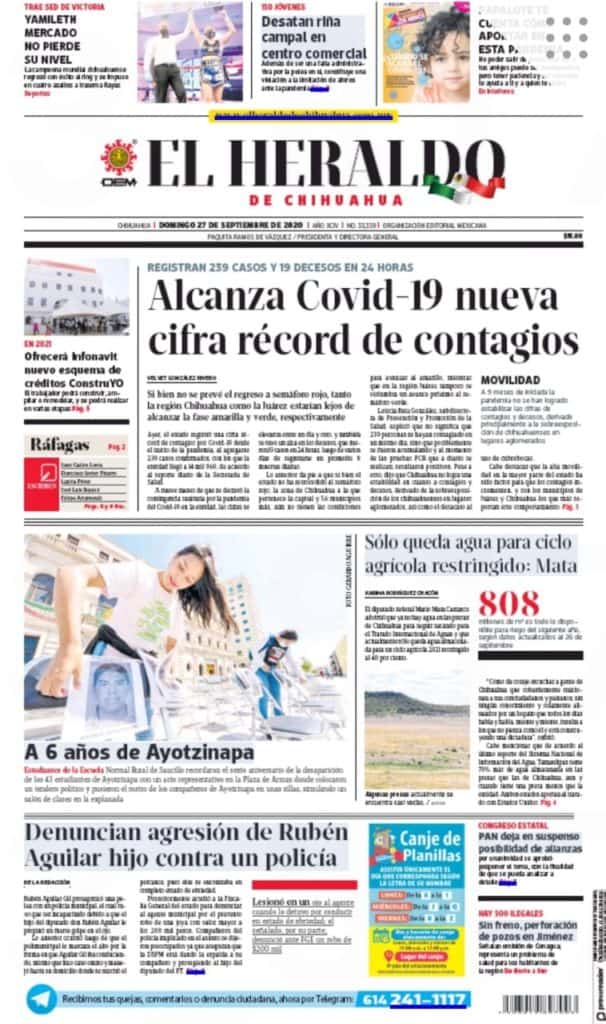 Portadas y Columnas políticas de hoy Primeras planas locales / 27 de septiembre 2020 27 septiembre, 2020 0 463 FacebookTwitterWhatsAppEmail