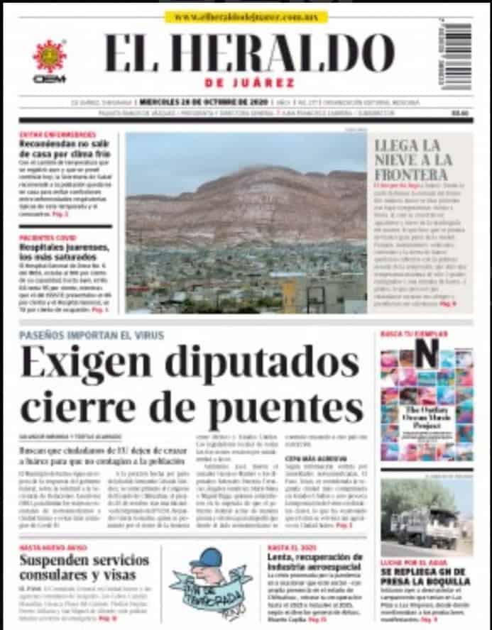Portadas y Columnas políticas de hoy Primeras planas locales / 28 de octubre 2020 28 octubre, 2020 0 477 FacebookTwitterWhatsAppEmail