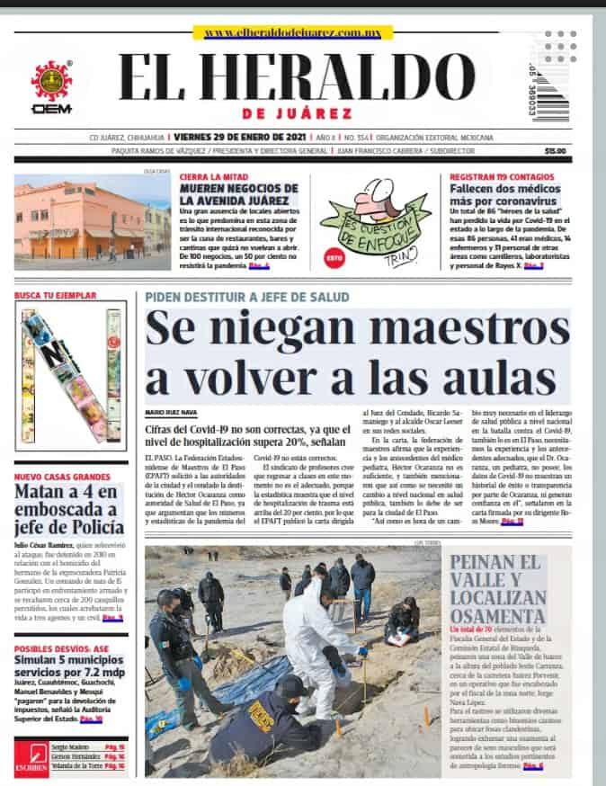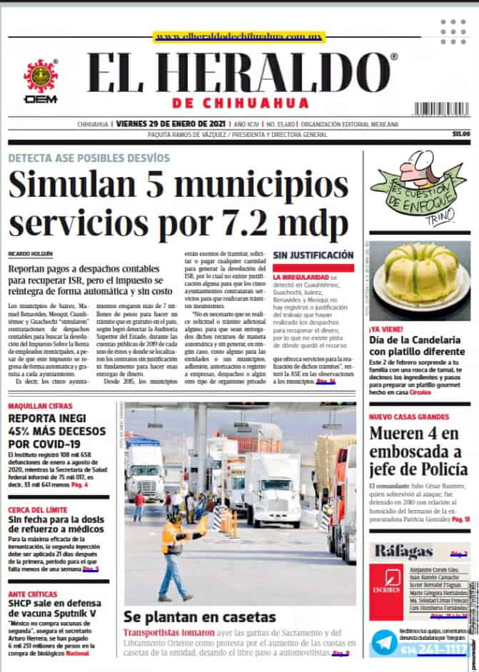 Portadas y Columnas políticas de hoy Primeras planas locales / 29 de enero 2021 29 enero, 2021 0 478 FacebookTwitterWhatsAppEmail