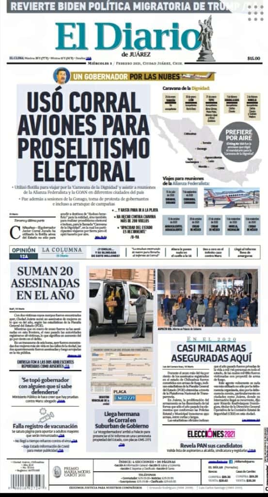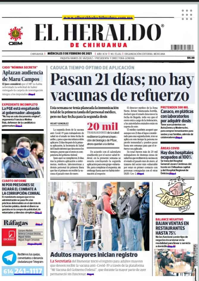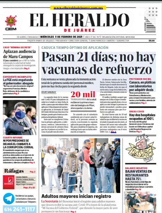 Portadas y Columnas políticas de hoy Primeras planas locales / 3 de febrero 2021 3 febrero, 2021 0 133 FacebookTwitterWhatsAppEmail