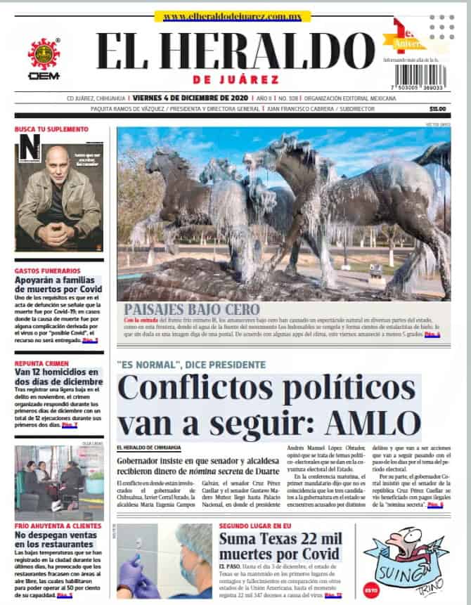 Portadas y Columnas políticas de hoy Primeras planas locales / 4 de diciembre 2020 4 diciembre, 2020 0 470 FacebookTwitterWhatsAppEmail