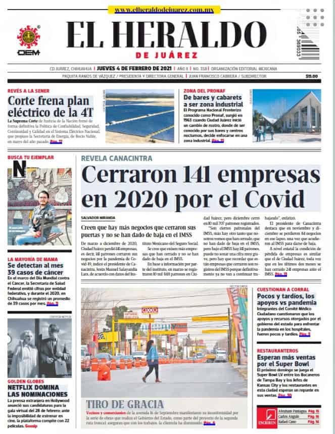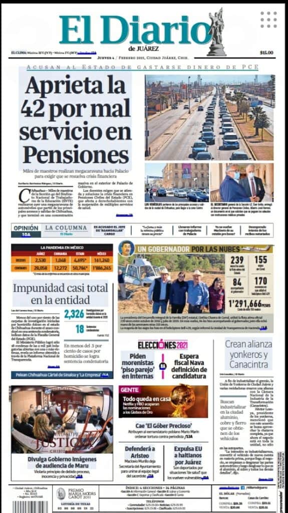 Portadas y Columnas políticas de hoy Primeras planas locales / 4 de enero 2021 4 febrero, 2021 0 519 FacebookTwitterWhatsAppEmail