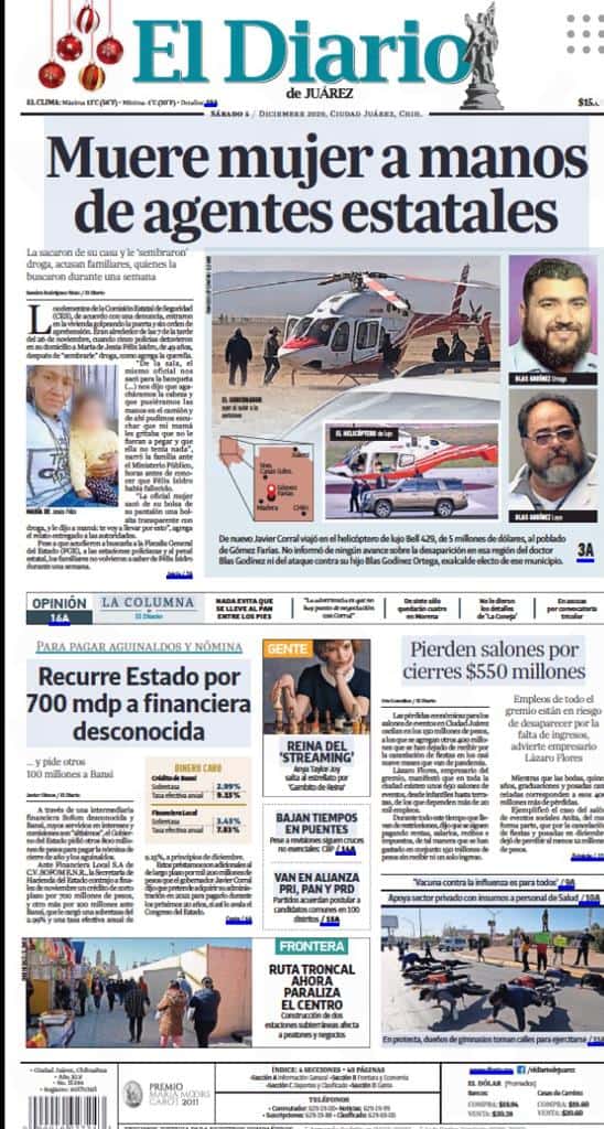 Portadas y Columnas políticas de hoy Primeras planas locales / 5 de diciembre 2020 5 diciembre, 2020 0 419 FacebookTwitterWhatsAppEmail