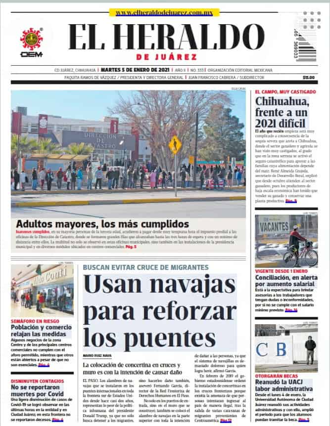 Portadas y Columnas políticas de hoy Primeras planas locales / 5 de enero 2021 5 enero, 2021 0 494 FacebookTwitterWhatsAppEmail