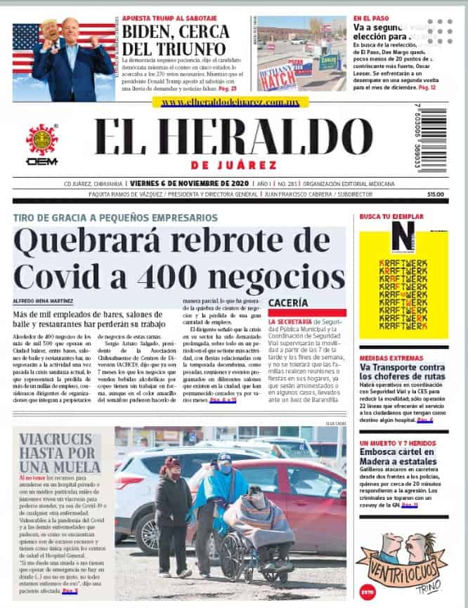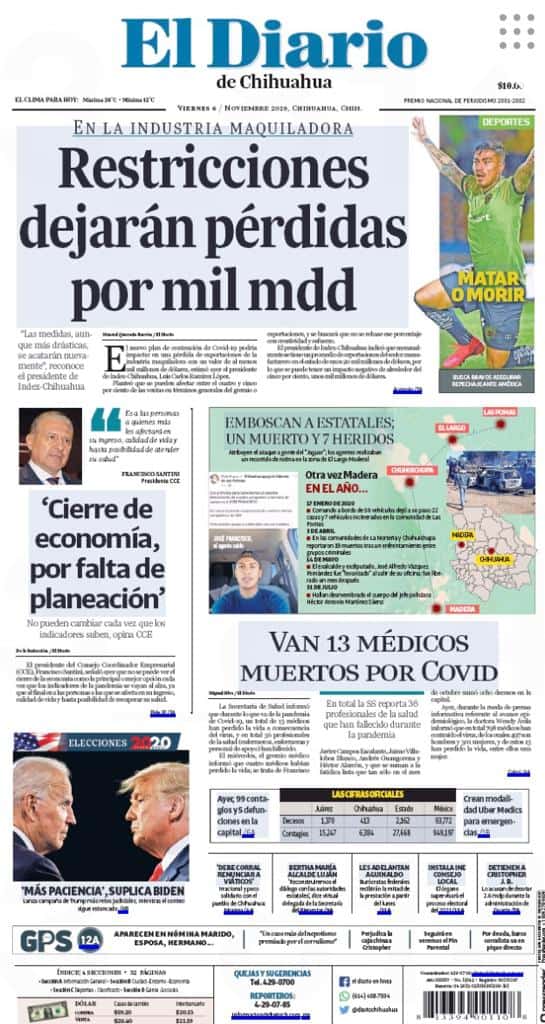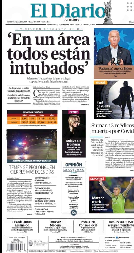 Portadas y Columnas políticas de hoy Primeras planas locales / 6 de noviembre 2020 6 noviembre, 2020 0 388 FacebookTwitterWhatsAppEmail
