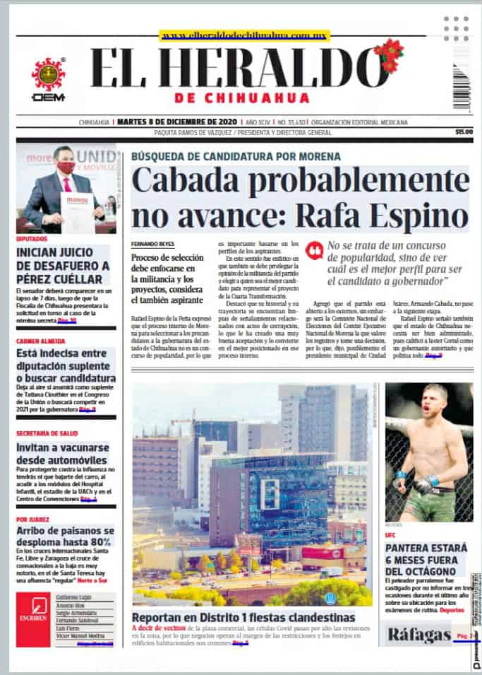 Portadas y Columnas políticas de hoy Primeras planas locales / 8 de diciembre 2020 8 diciembre, 2020 0 447 FacebookTwitterWhatsAppEmail