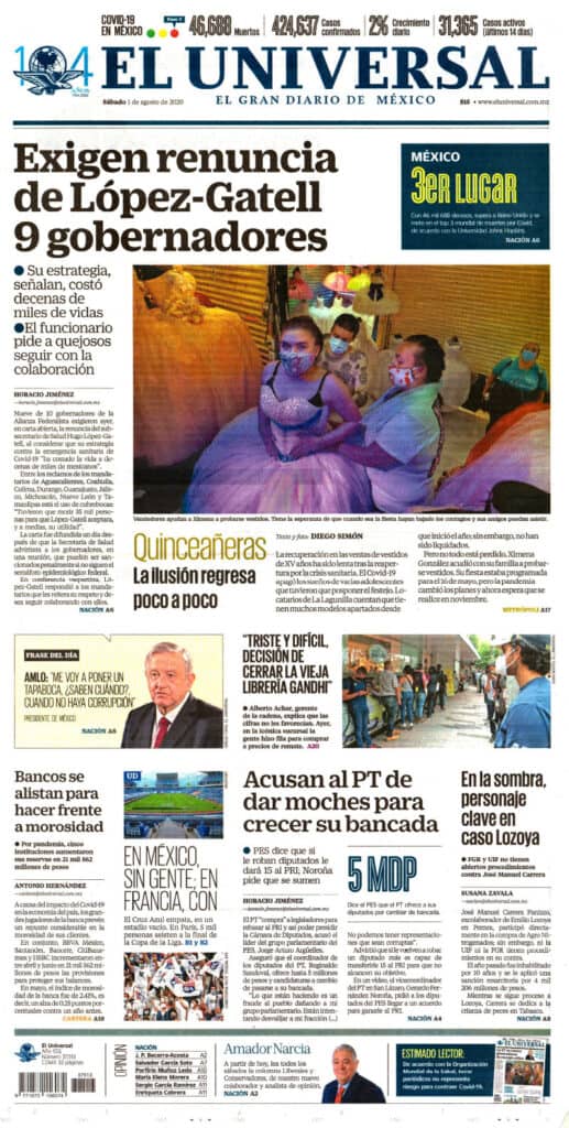 Portadas y Columnas políticas de hoy Primeras planas nacionales / 01 de agosto 2020 1 agosto, 2020 0 464 FacebookTwitterWhatsAppEmail