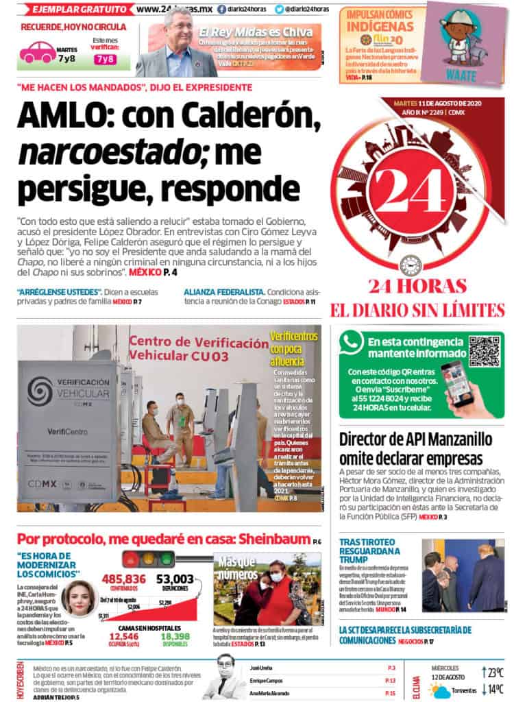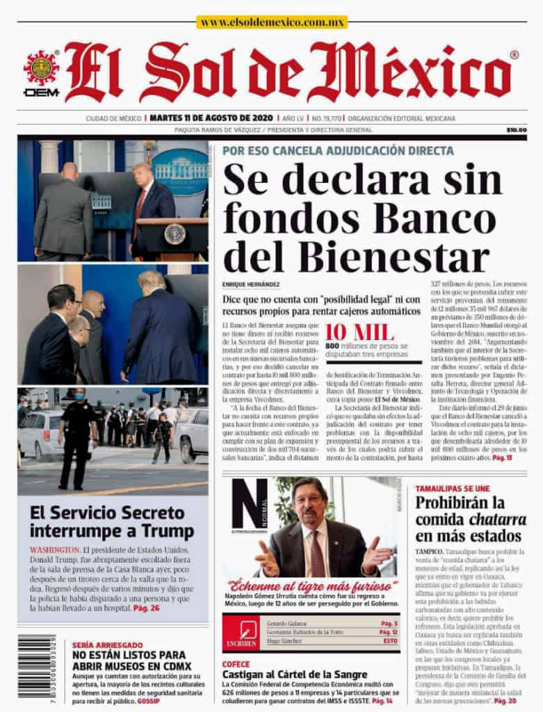 Portadas y Columnas políticas de hoy Primeras planas nacionales / 11 de agosto 2020 11 agosto, 2020 0 489 FacebookTwitterWhatsAppEmail