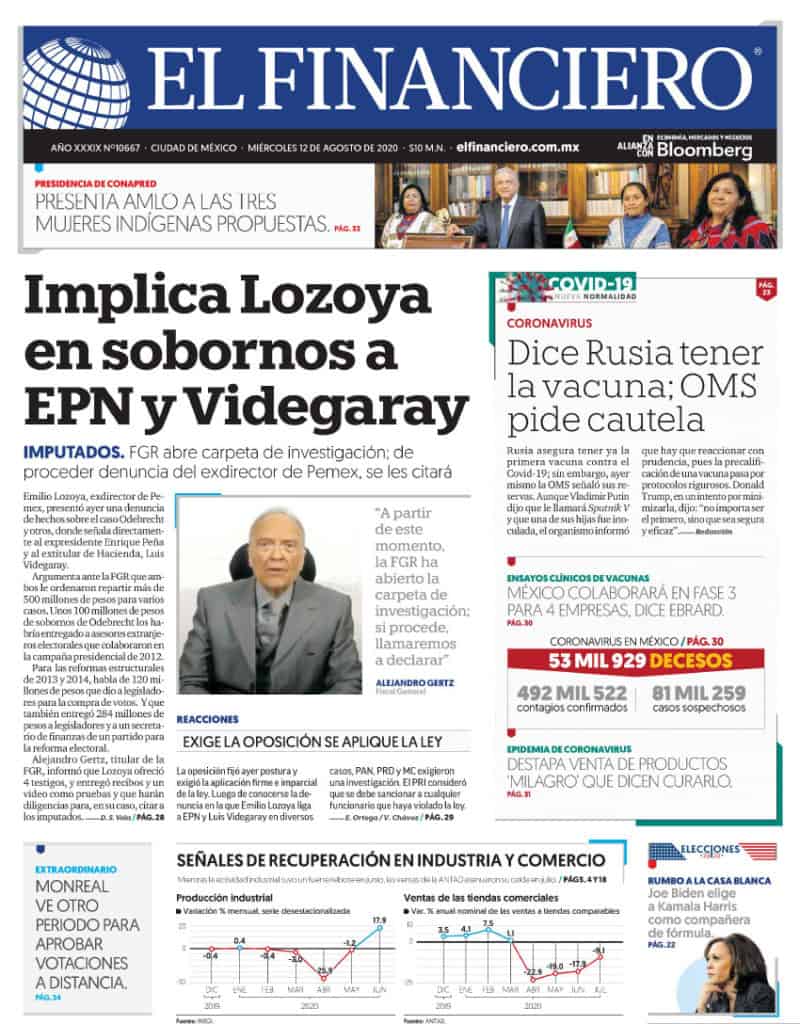 Portadas y Columnas políticas de hoy Primeras planas nacionales / 12 de agosto 2020 12 agosto, 2020 0 550 FacebookTwitterWhatsAppEmail