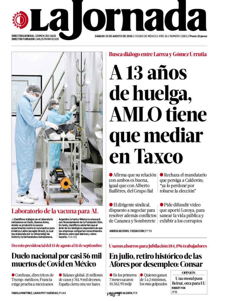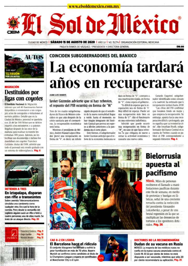 Portadas y Columnas políticas de hoy Primeras planas nacionales / 15 de agosto 2020 15 agosto, 2020 0 449 FacebookTwitterWhatsAppEmail