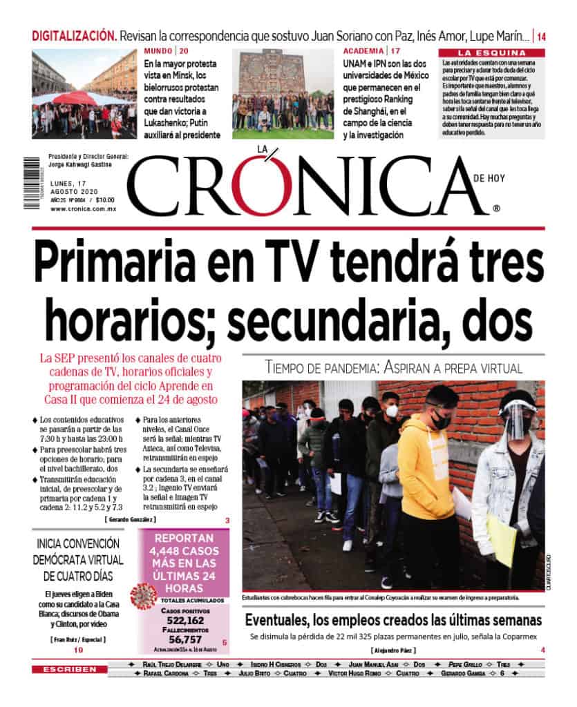 Portadas y Columnas políticas de hoy Primeras planas nacionales / 17 de agosto 2020 17 agosto, 2020 0 492 FacebookTwitterWhatsAppEmail
