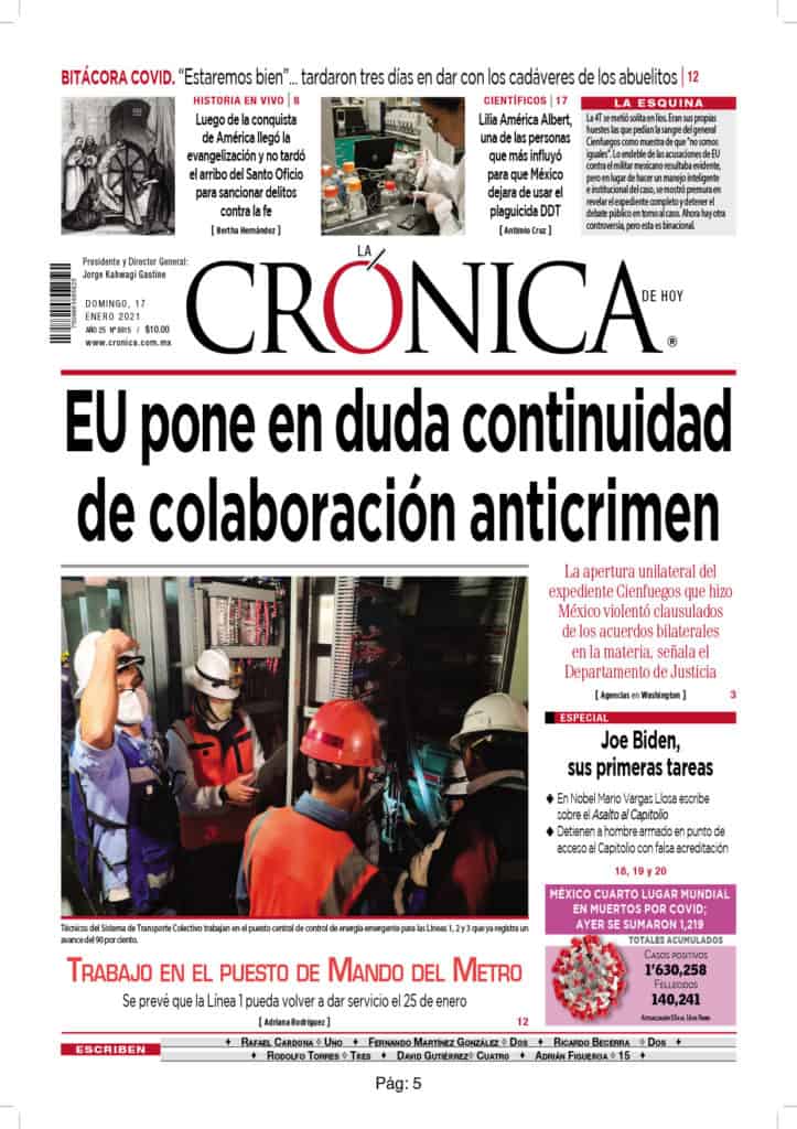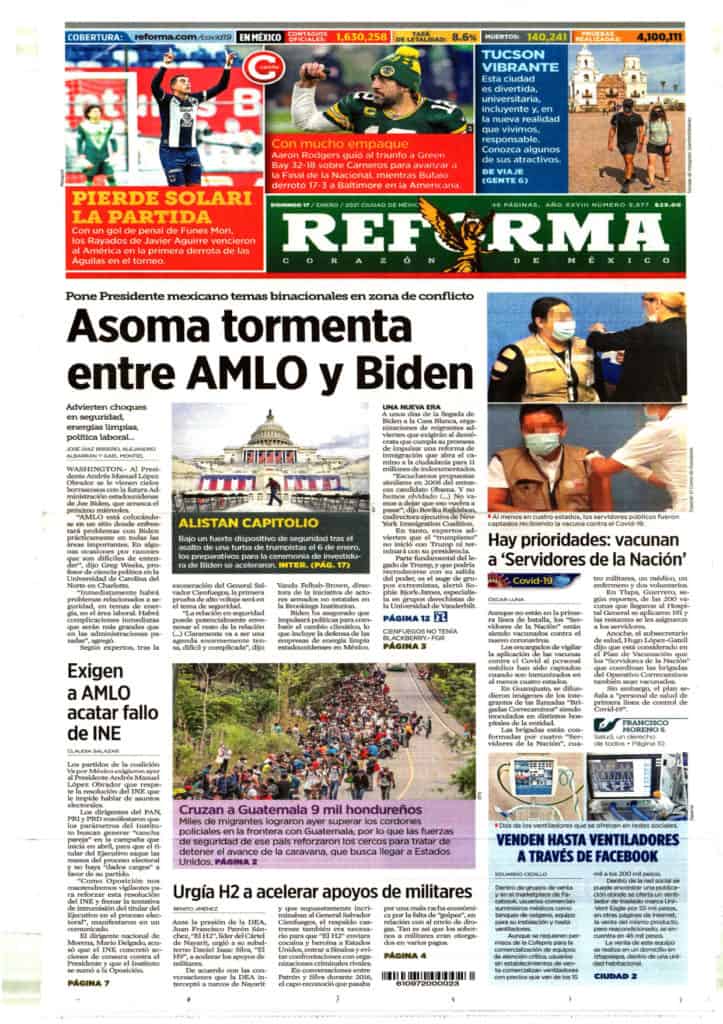 Portadas y Columnas políticas de hoy Primeras planas nacionales / 17 de enero 2021 17 enero, 2021 0 388 FacebookTwitterWhatsAppEmail
