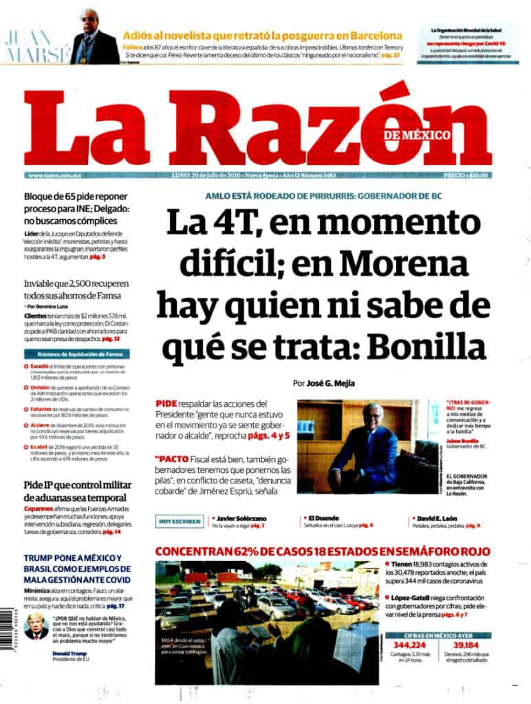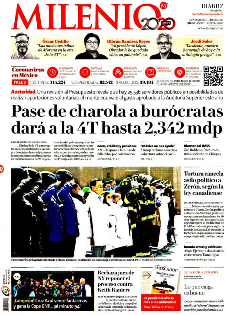 Portadas y Columnas políticas de hoy Primeras planas nacionales 20 de julio 2020 20 julio, 2020 0 427 FacebookTwitterWhatsAppEmail