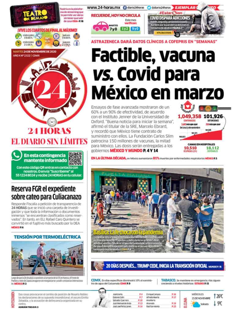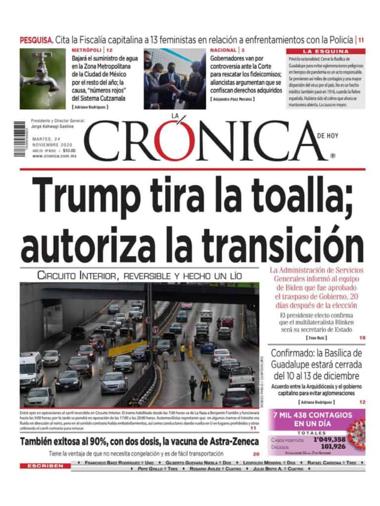 Portadas y Columnas políticas de hoy Primeras planas nacionales / 24 de noviembre 2020 24 noviembre, 2020 0 512 FacebookTwitterWhatsAppEmail