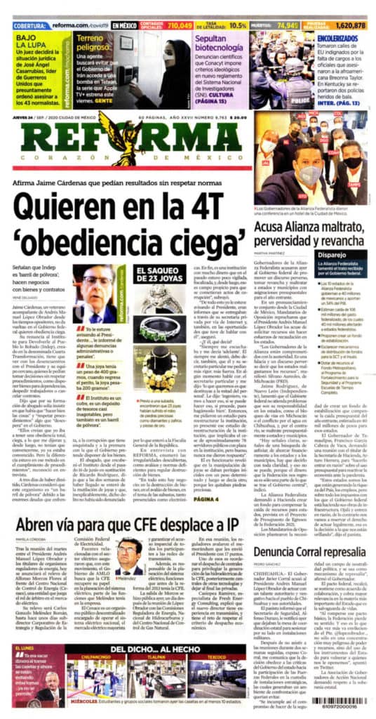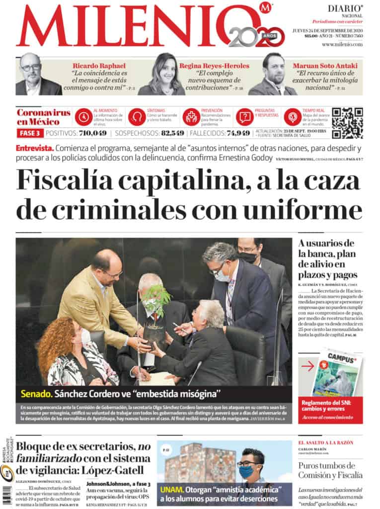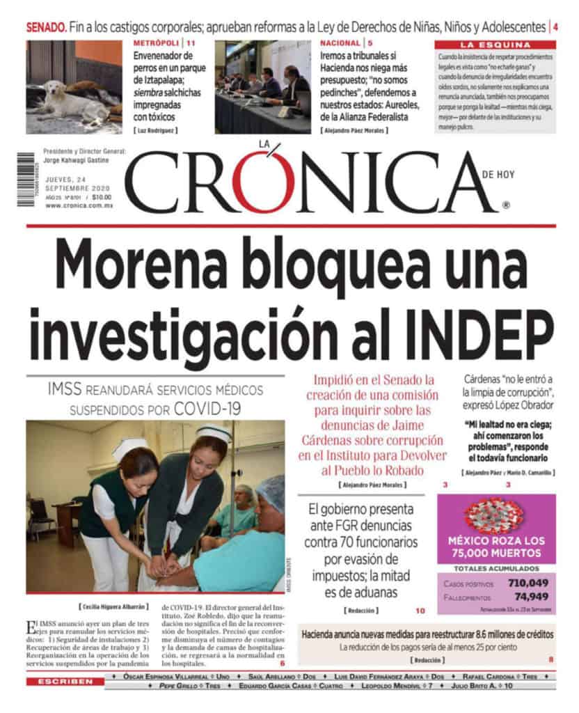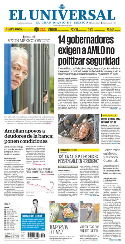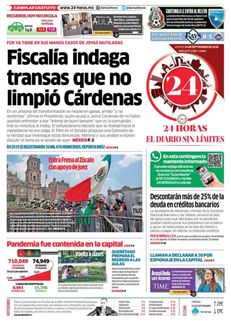 Portadas y Columnas políticas de hoy Primeras planas nacionales / 24 de septiembre 2020 24 septiembre, 2020 0 435 FacebookTwitterWhatsAppEmail